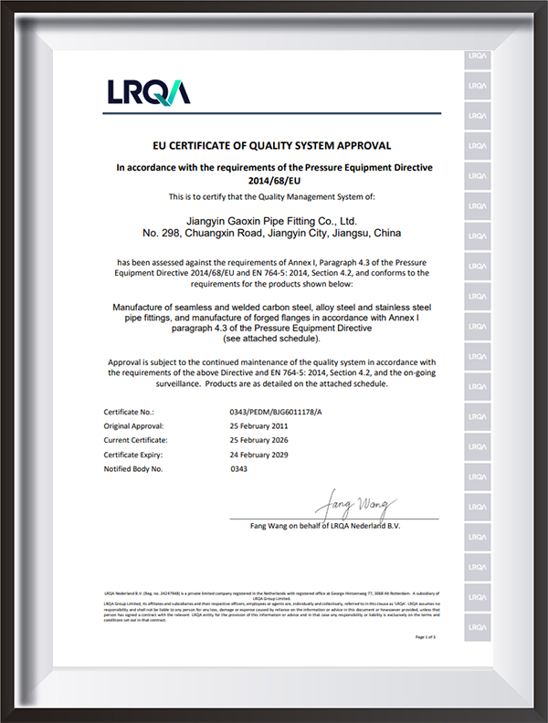 Наша компания является профессиональным производителем компонентов напорных трубопроводов. Ассортимент нашей продукции охватывает фитинги для труб со стыковой сваркой, раструбной сваркой и резьбовые фитинги, включая фланцы и нестандартные детали по индивидуальному заказу. Эти продукты широко используются в таких отраслях, как нефтегазовая, химическая переработка, энергетика, судостроение, производство бумаги, металлургия, фармацевтика и пищевая промышленность. Мы производим продукцию в соответствии с такими стандартами,как ASME,EN, JIS,DIN, ANSI,GOST, MSS,GB/T,HG, DL,SH, SY,и имеем полный спектр инспекционного оборудования, строгую систему контроля качества и различные сертификаты (PED, AD2000, EAC, ABS, BV, DNV, NORSOK M650, ISO9001, ISO14001, ISO45001 и т. д.), что делает нас лидером в отрасли.